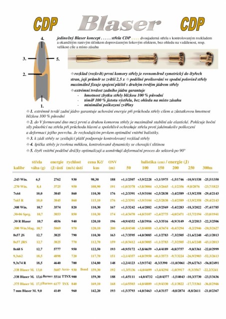 Høy sjokk-effekt og stor penetrasjonskraft mens vekten praktisk talt forblir den samme – disse egenskapene er resultatet av CDP-prosjektilet og dets kontrollerte deformasjonsprosess. Til tross for den relativt lave vekten av kulen, produserer den ønsket utgangssår og skåner dyret i størst mulig grad. Ved støt deformeres CDP-kulen på en kontrollert måte, og sopp symmetrisk i fire retninger, uavhengig av hastighet og målmotstand. Under soppbygging multipliseres kulens diameter med 2,5 av dens opprinnelige kaliber. Denne effekten er oppnådd gjennom nøyaktig beregning av de individuelle komponentene i kulen.