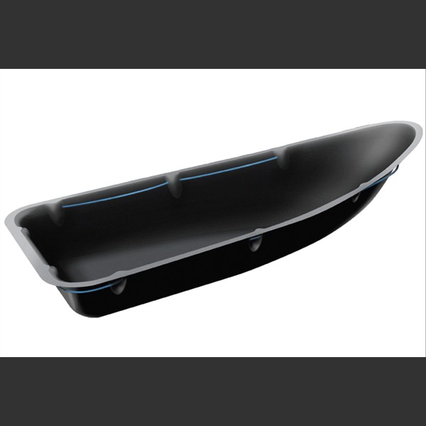 - Den er laget i HD Polyethen, noe som gir den høy slitestyrke, tåler støt, slag og kulde uten å sprekke.