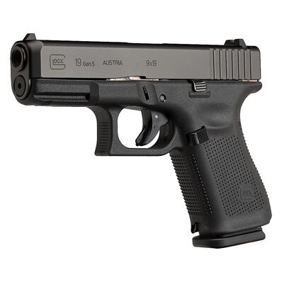 The GLOCK 19 Gen5 pistol in 9 mm Luger is ideal for a more versatile role due to its reduced dimensions. The new frame design without finger grooves still allows to instantly customize its grip to accommodate any hand size by mounting the different Beavertail Backstraps.