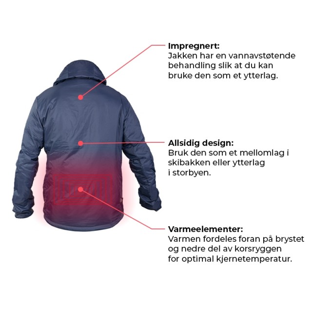 HeatX Heated Hybrid Jacket er “go-to”-jakken for et bredt spekter av aktiviteter, sommer som vinter. Designet for å være lett, stilren og allsidig. Bruk den som mellomlag i skibakken eller som ytterlag i storbyen. Den biten er opp til deg!