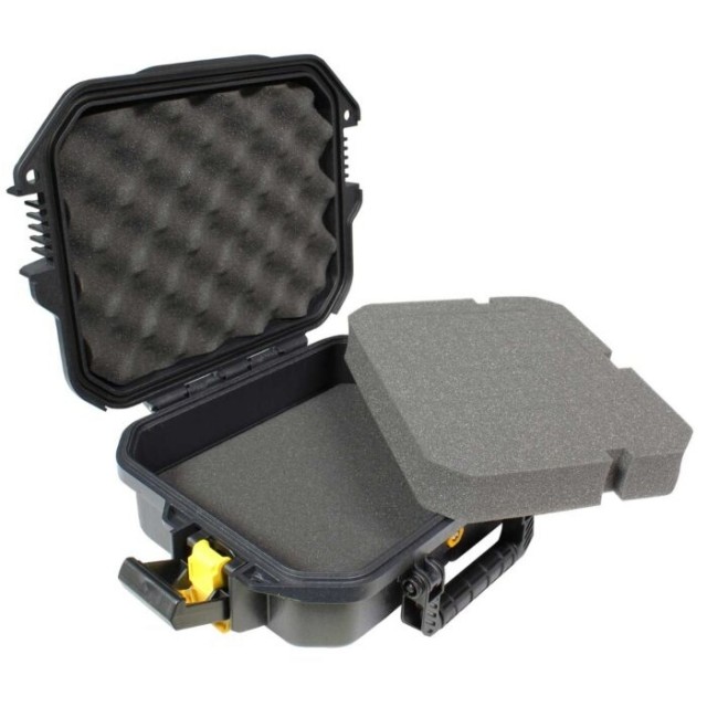 This All-Weather single pistol case will protect your firearm from water, dirt and impact. It's rugged, industrial srength construction and Dri-Loc seal protects your gear even in the most extreme conditions. The heavy duty, lockable latches and pressure release valve provides protection from the knocks and bumps during airline travel and equalizes the pressure caused by altitude. The interior is kitted out with high-density foam, with the top pluck layer precut into cudes which can be removed to fit the shape of the pistol.