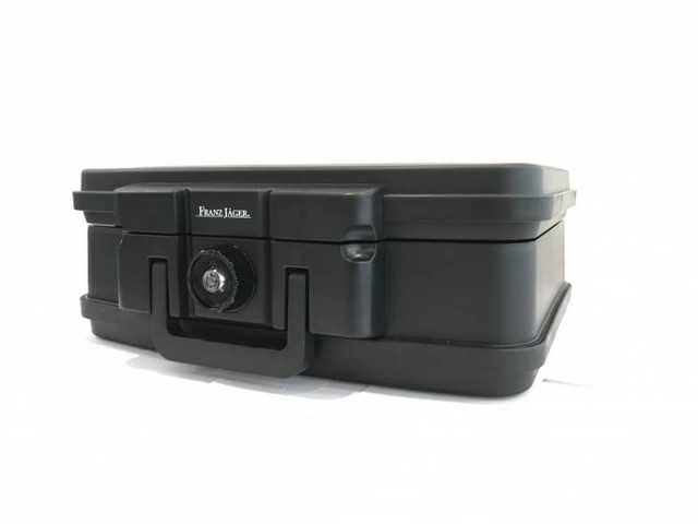 Stilren og kraftig Franz Jäger Brannkoffert beskytter dine papirer og verdisaker mot brann. Brannkofferten passer ypperlig som beredskapskoffert eller for ekstra brannbeskyttelse og plasseres der det passer frittstående. Brannkofferten er både vanntett og brannsikker. Kofferten er UL sertifisert hvilket betyr at kofferten beholder temperaturen under 177 grader i minimum 30 minutter dersom romtemperaturen er opp til 843 grader! Brannkofferten garanterer ikke beskyttelse av sensitive enheter som ikke tåler temperatur opptil 177 grader. Brannkofferten er ikke godkjent for oppbevaring av våpen. Brannkofferten sendes pr post.